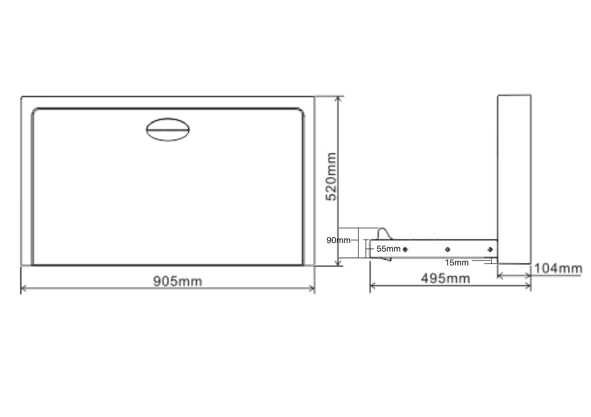 | Features | Concave change area Safety restraining strap fitted with click lock mechanism Dual bed liner dispensers Robust, Vandal resistant construction Pneumatic internal Open/Close arm Bag Holders on Front Corners Usage instructions and safety label inside unit Suitable for up to 20kg use |