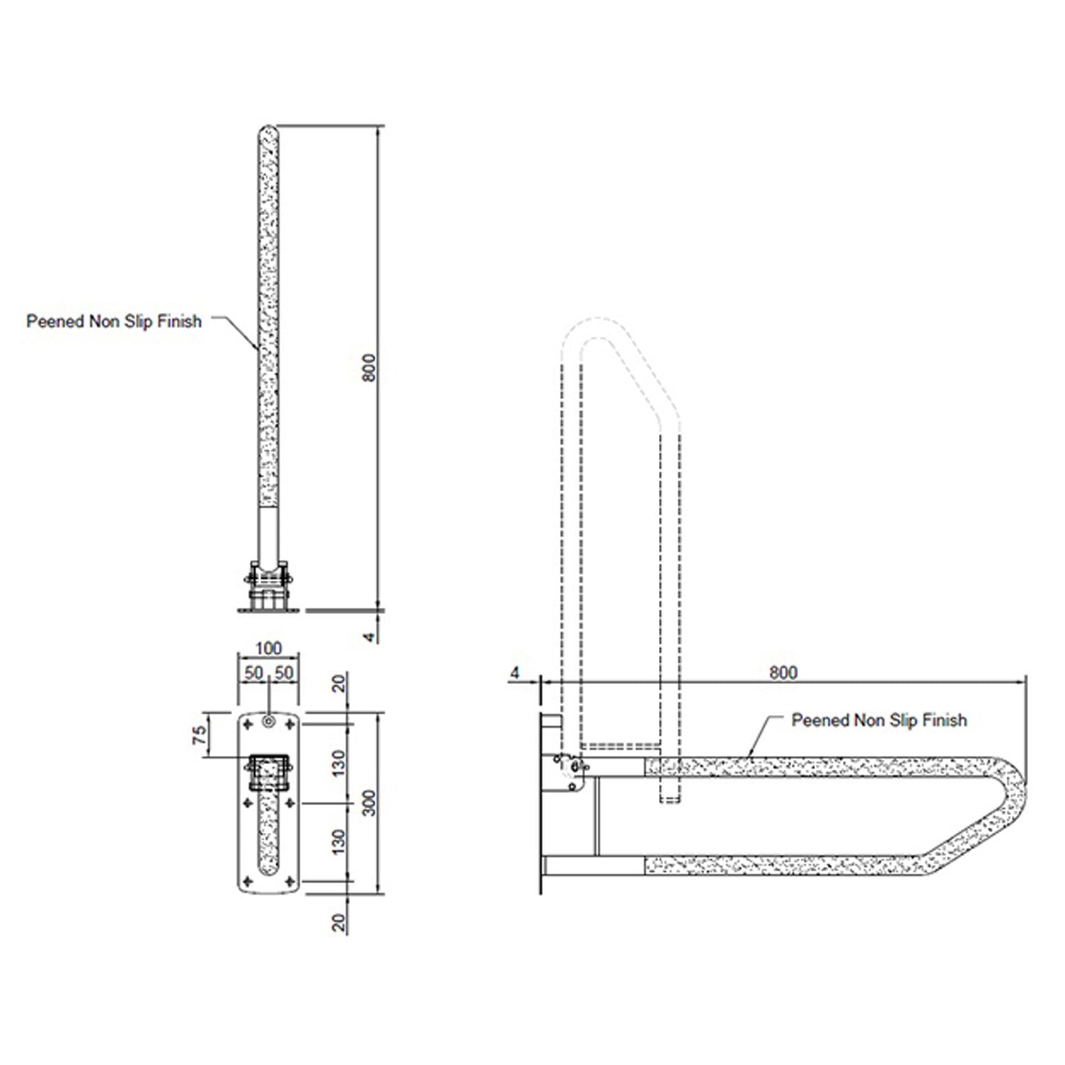 | Material | #304 Stainless Steel - 32mmØ Peened Non-Slip Finish |