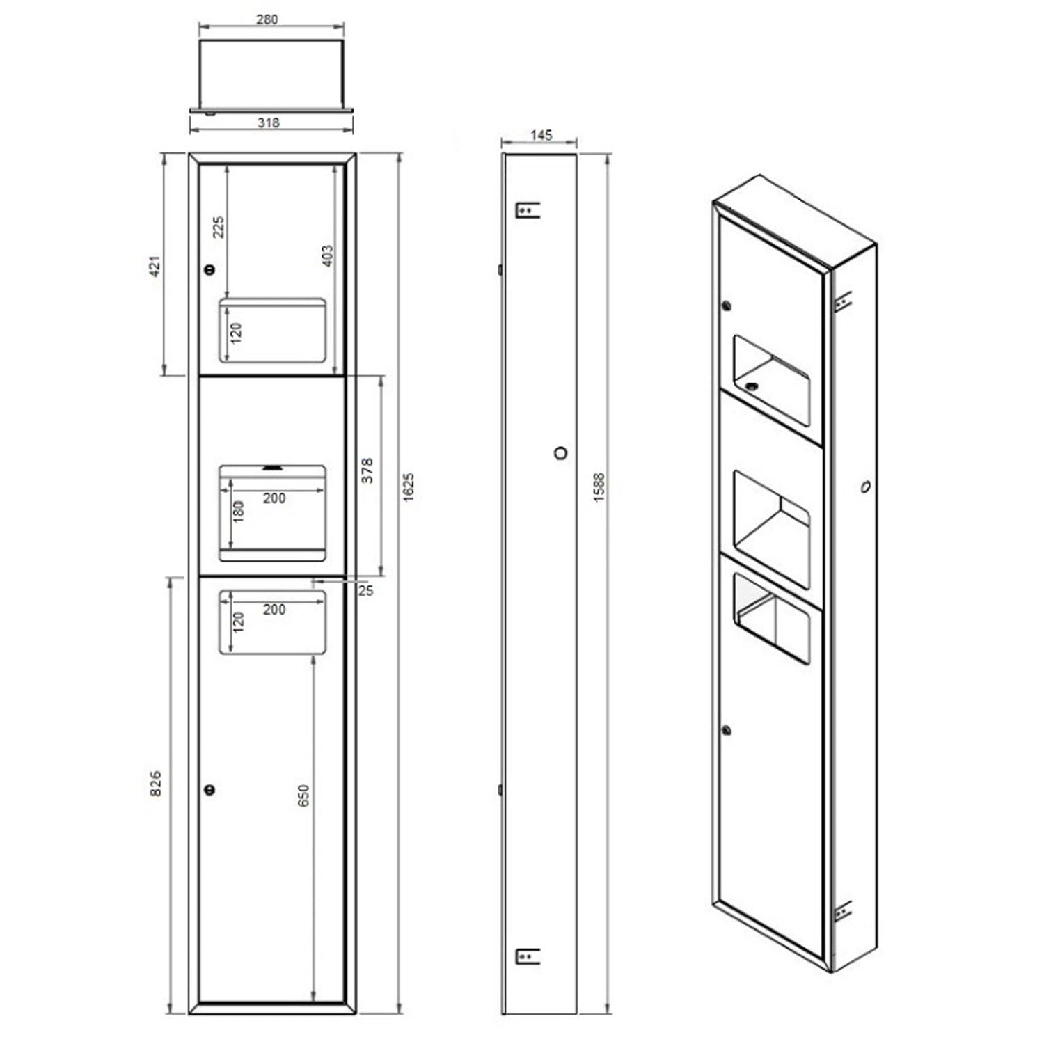 | Overall Size | 318mmW x 1625mmH x 145mmD |