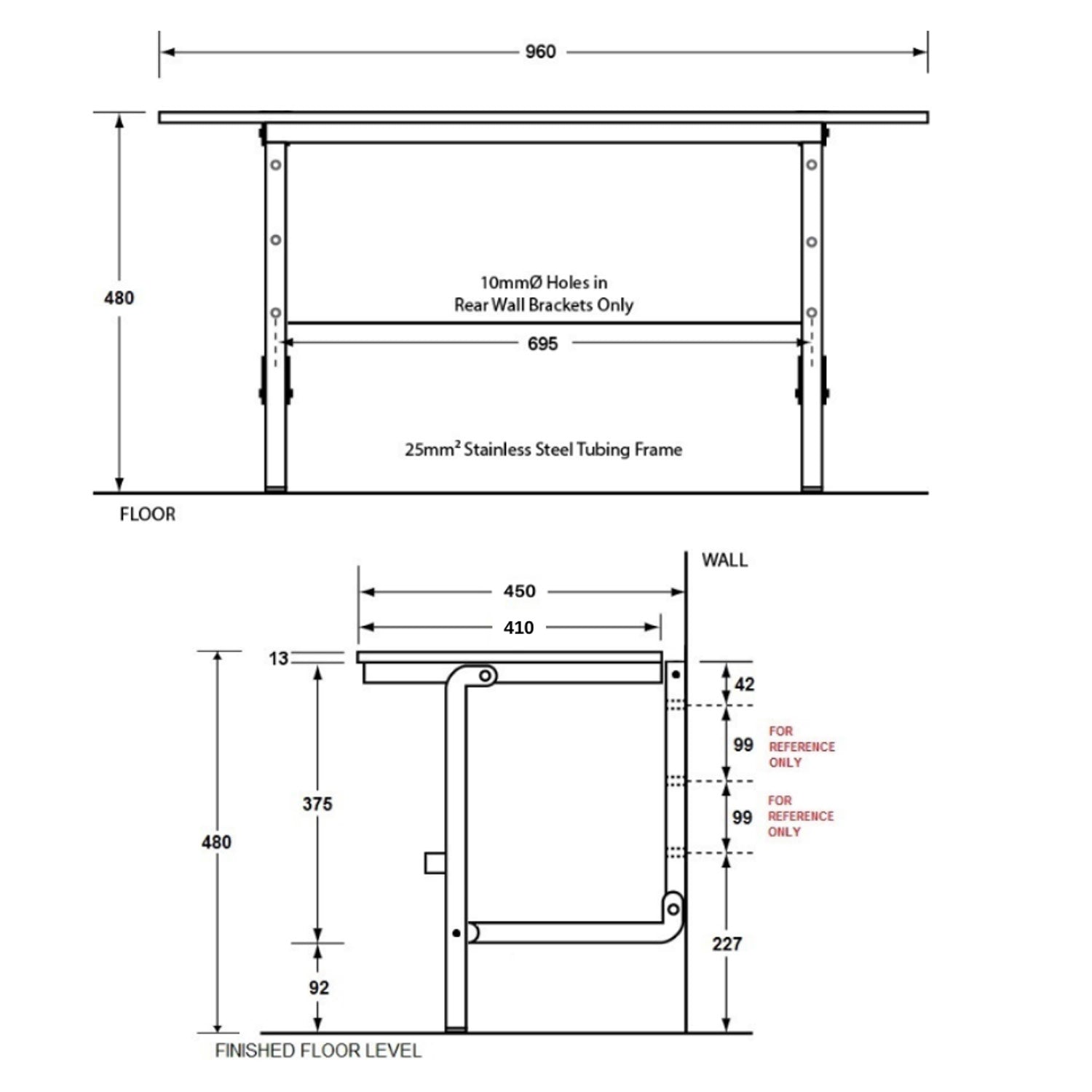 | Note | * The material and construction of this seat meet AS1428.1 force requirements to be able to withstand a force of 1100Nm. When installed correctly this seat is rated to support 250kg. |