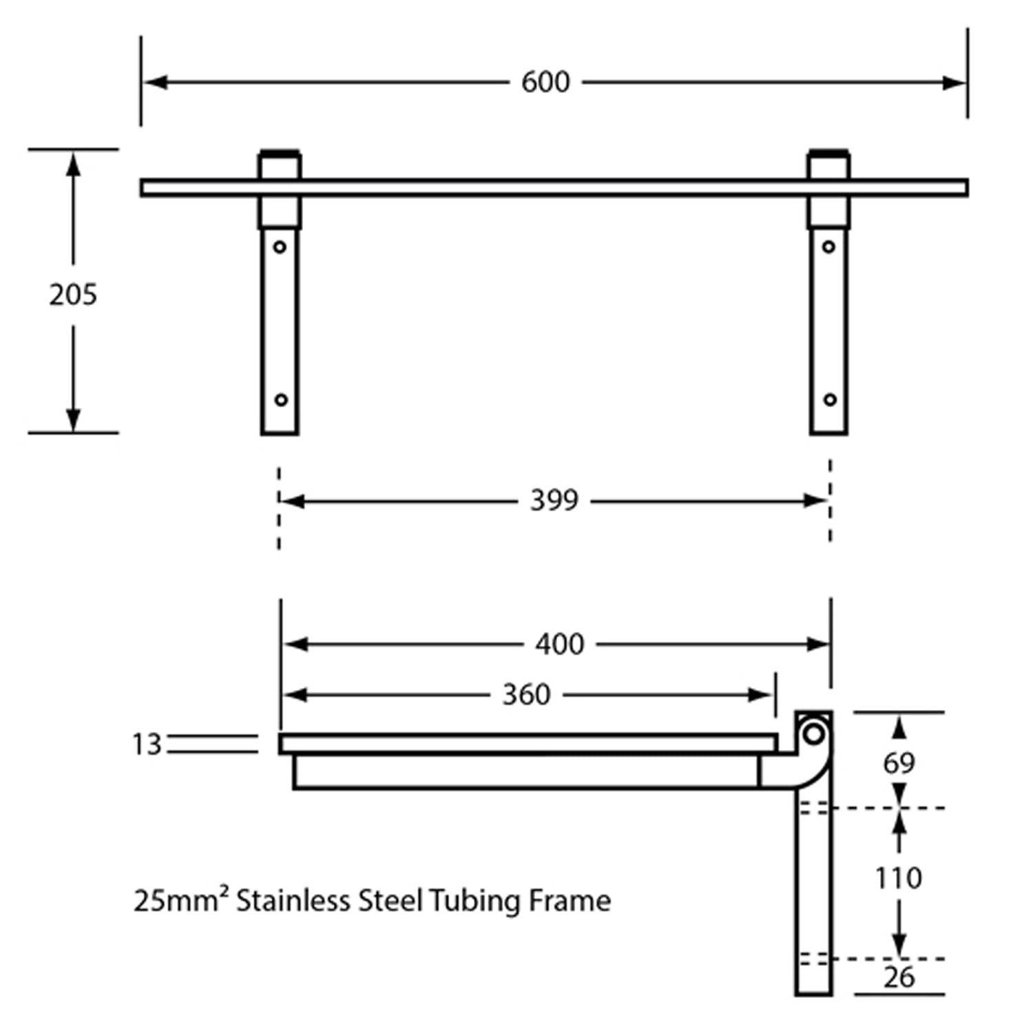 Material #304 Satin Stainless Steel Frame - 25mm² Tube