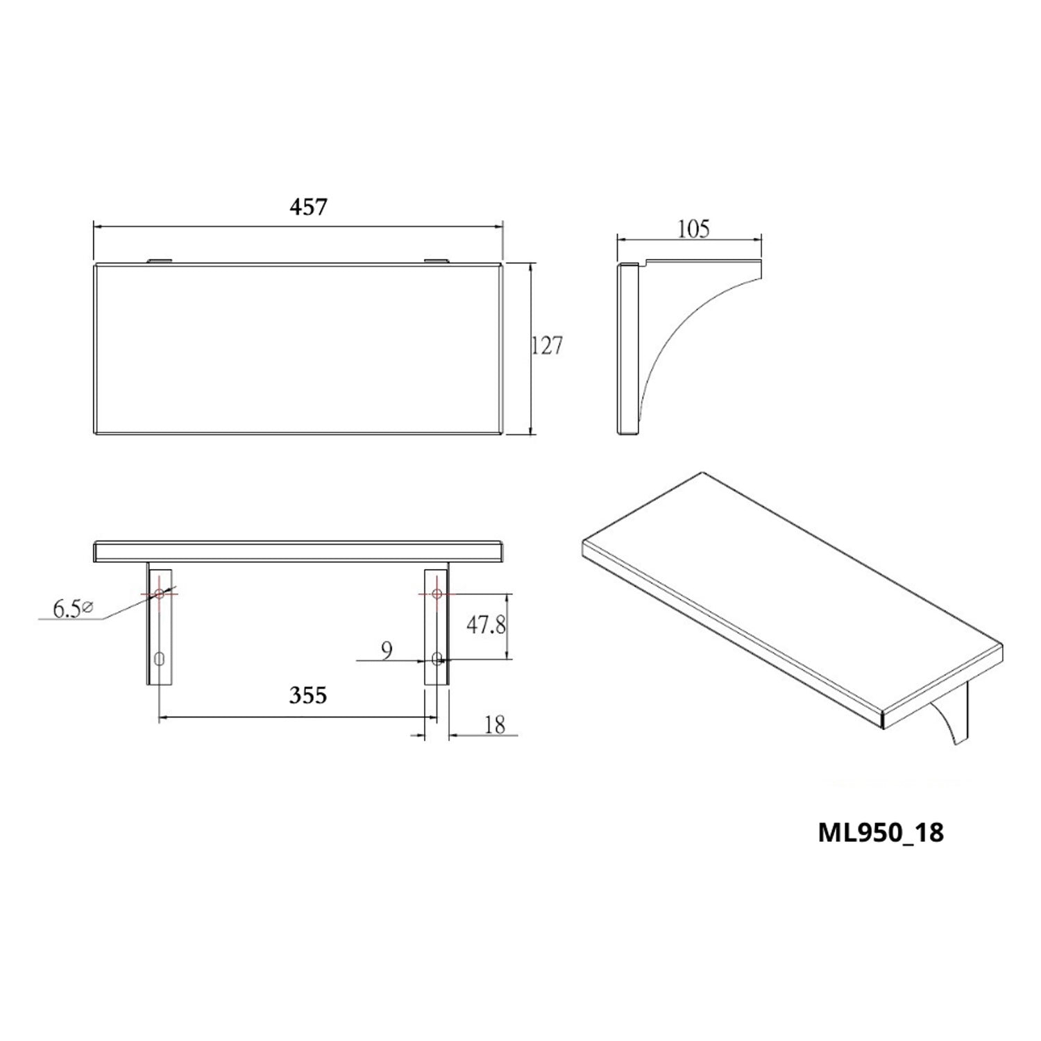 457mmW x 105mmH x 127mmD Utility Shelf in Satin Stainless Steel