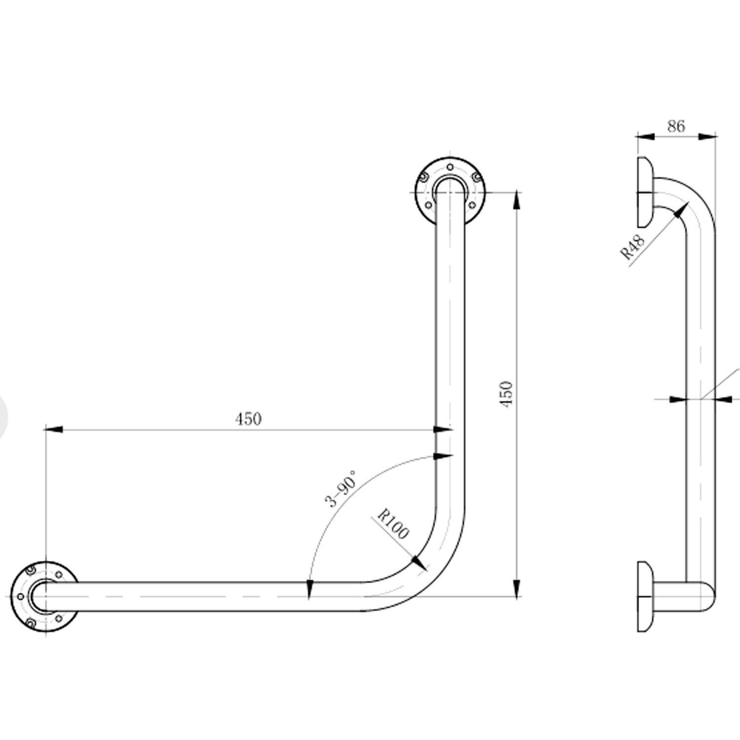 90° Ambulant Grab Rail 450x450mm in Antimicrobial