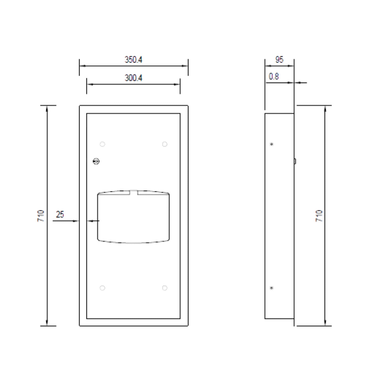 Paper Towel Dispenser & Waste Receptacle Recessed in Satin Stainless Steel